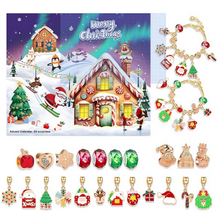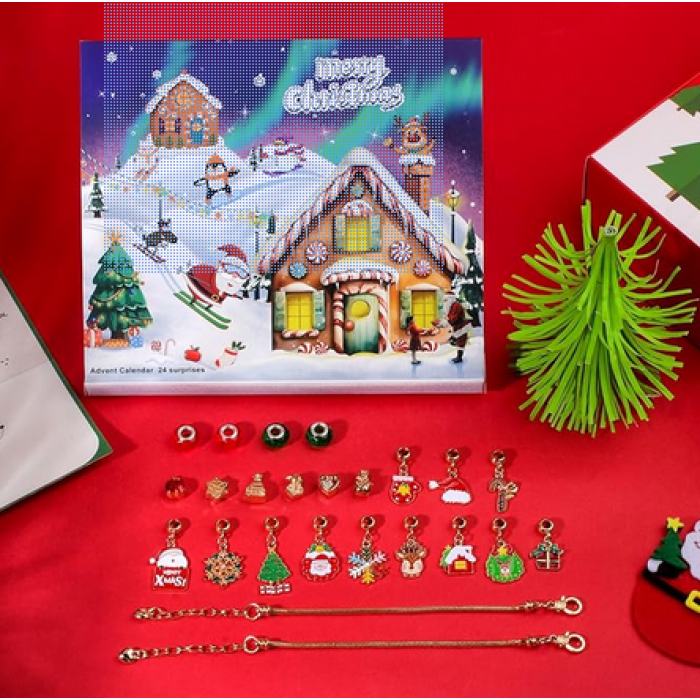 Advento kalendorius suteiks ne tik džiaugsmo kiekvieną rytą, nustebins vis kitu papuošimu, kurių dėka susikursite apyrankę ir kaklo papuošalą Kalėdinei šventei ir ne tik! Kalendorius taip pat padės skaičiuoti likusias dienas iki taip laukiamų švenčių!