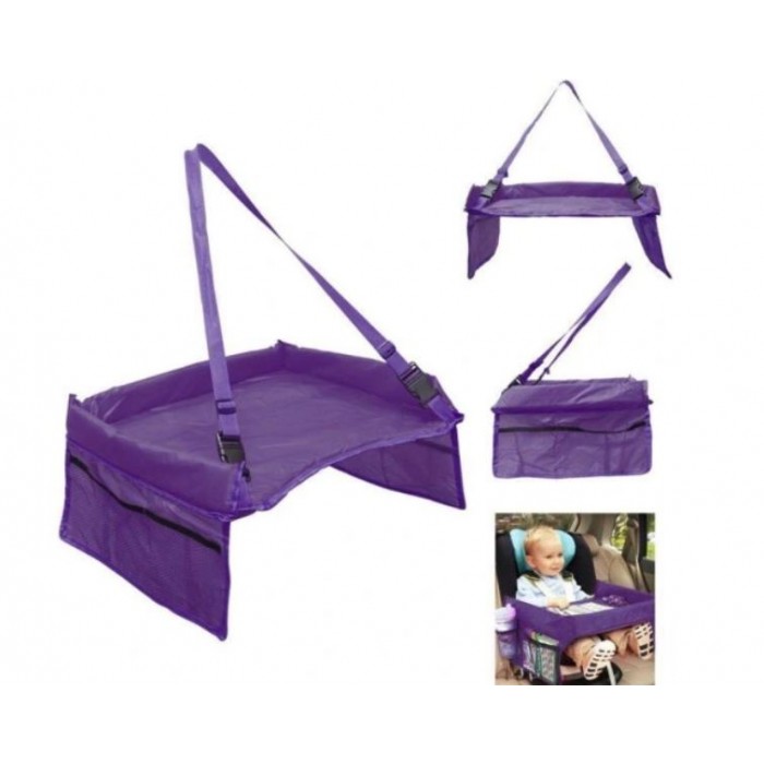 Kelioninis žaidimu, užkandžių staliukas tinka ant automobilines kėdutės ar vaiko kelių, maitinimo kėdutės ir pan. Yra diržas, kad vaikutis nenumestu staliuko. Borteliai, kad žaislai nenukristų. Šonines 4 kišenes. Patogus vežtis atostogauti ar naudoti namuose. Lengvai valoma medžiaga. Be dėžutės.