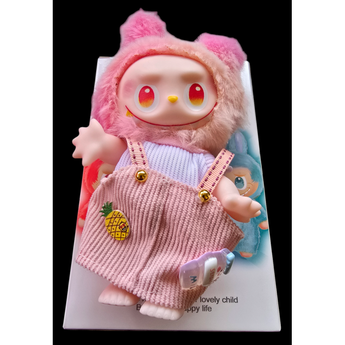 Praturtink savo Labubu kolekciją nauja figūrėle - raktų pakabuku. Labubu su rūbeliais, turi judrias kūno vietas - galima pasukti galvytę, rankytes ir kojytes. Rūbeliai nuimami, kūnelis, galvytė iš vinilo, kas žaisliuką padaro saugiu,m minkštu, patogiu žaisliuku. Galvytė turi kailinę uždedamą dalį su ausytėmis. Yra pakabukas, kas leidžia žaisliuką nuolat nešiotis su savimi. Žaisliukas lengvai valomas, rūbelius galima keisti, kurti naujus ir puošti jais savajį Labubu žaisliuką.