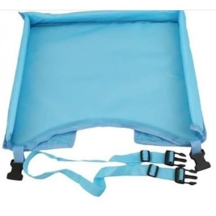 Kelioninis žaidimu, užkandžių staliukas tinka ant automobilines kėdutės ar vaiko kelių, maitinimo kėdutės ir pan. Yra diržas, kad vaikutis nenumestu staliuko. Borteliai, kad žaislai nenukristų. Šonines 4 kišenes. Patogus vežtis atostogauti ar naudoti namuose. Lengvai valoma medžiaga. Be dėžutės.