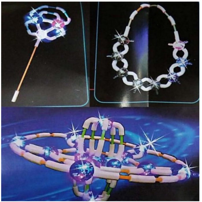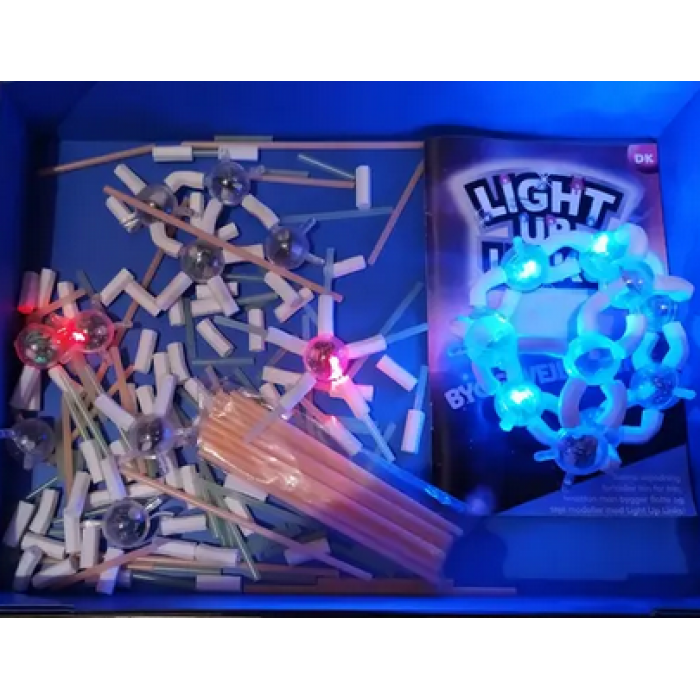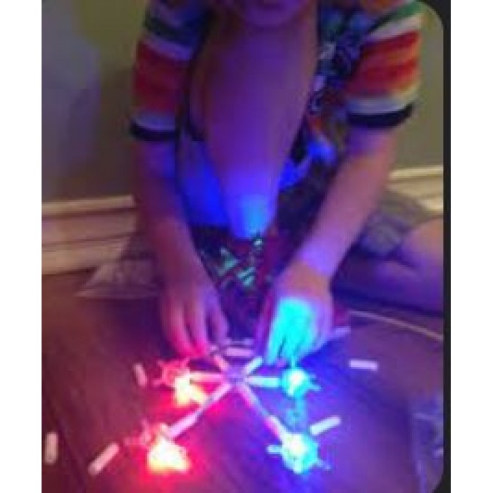 Ir berniukams, ir mergytėms patiks šviečiantis konstruktorius. Galima sudėti viską: kamuolį, akinius, karūną, automobiliuką, net šuniuką ar planetą ir viską ko geidžiate! Lengvai sudedamas, šviečiančios dalys, paverčia konstruktoriu išskirtiniu ir patraukliu. Tai puikus lavinamasis žaislas net ir vyresniems vaikams ar paaugliams. Lavina vaizduotę, padeda sutelkti dėmesį, vysto kūribiškumą. Komplekte 128 detalės, instrukcijos knygelė su nuosekliais paaiškinimais kaip sudėti pasirinktą figūrėlę.